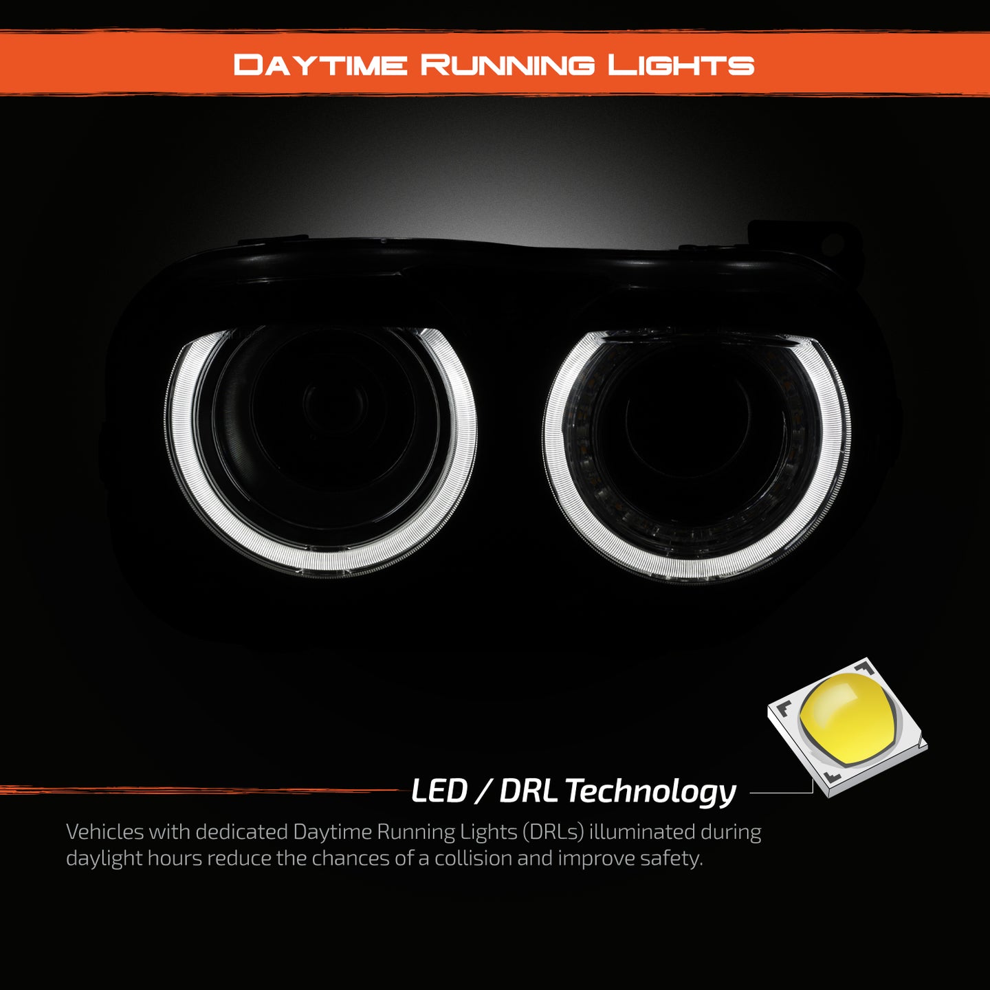 AKKON - Fit 2015-2020 Dodge Challenger Halogen Type Dual Beam Switchback w/LED DRL Projector Headlight Right Passenger Side