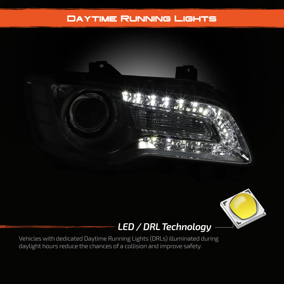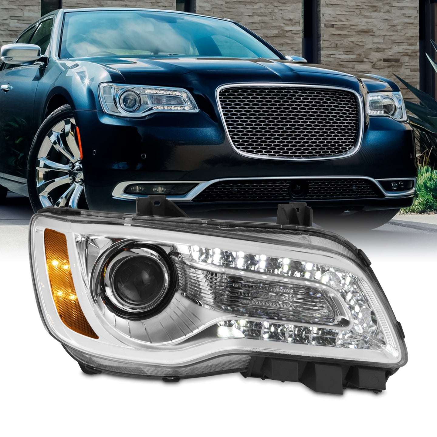 AKKON - Fit 2015-2023 Chrysler 300 Halogen Type Projector Headlight Chrome Bezel OE Style Passenger Right Side