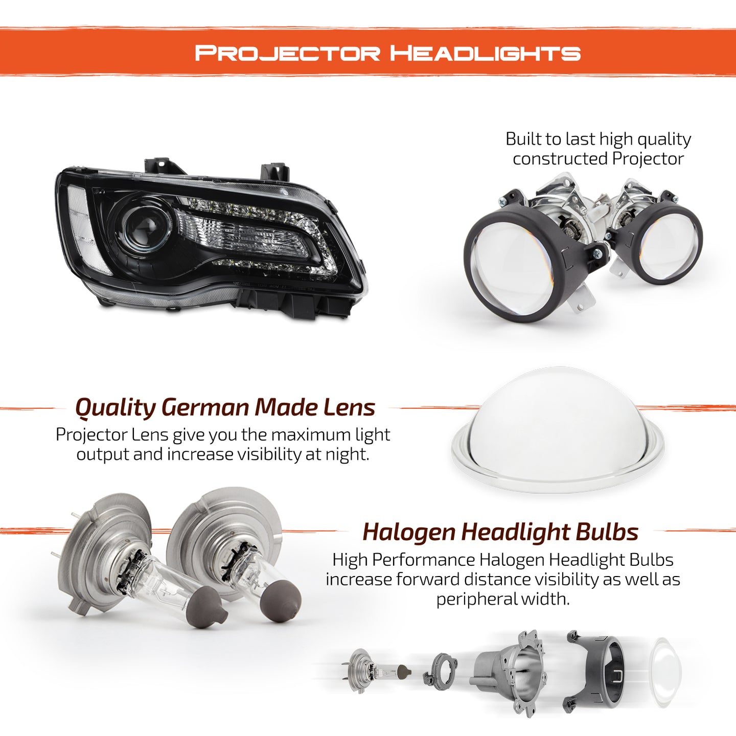 AKKON - Fit 2015-2023 Chrysler 300 Halogen Type Projector Headlight Black Bezel OE Style Passenger Right Side
