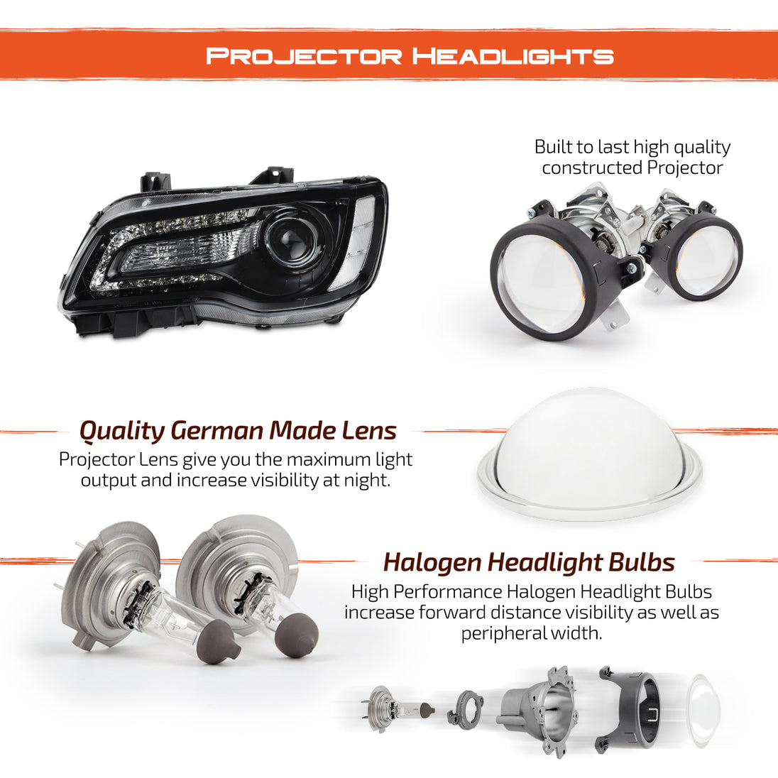 AKKON - Fit 2015-2023 Chrysler 300 Halogen Type Projector Headlight Black Bezel OE Style Driver Left Side