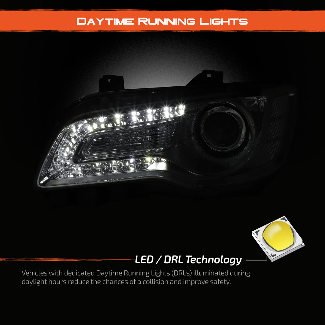 AKKON - Fit 2015-2023 Chrysler 300 Halogen Type Projector Headlight Chrome Bezel OE Style Driver Left Side
