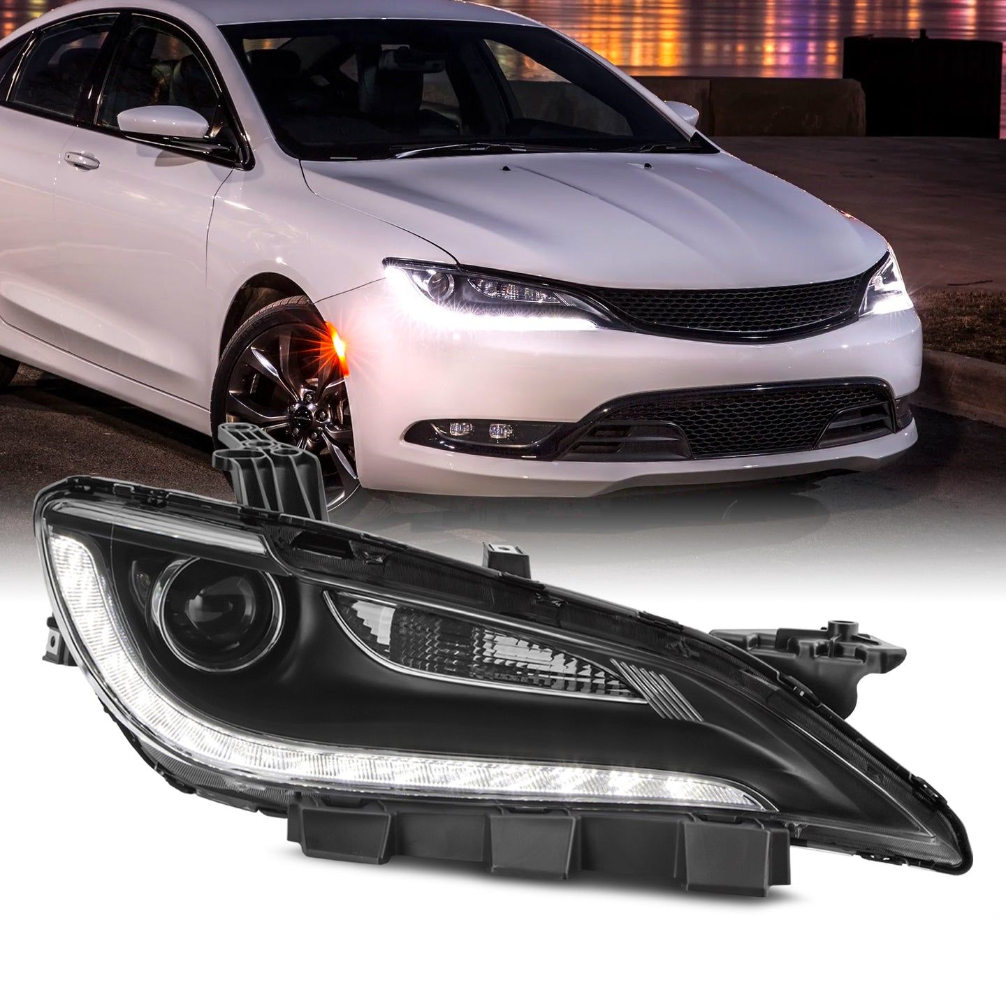 AKKON - Fit 2015 2016 2017 Chrysler 200 15-17 HID w/ LED DRL Chrome Trim Projector Headlight Headlamp Passenger Right Side Assembly
