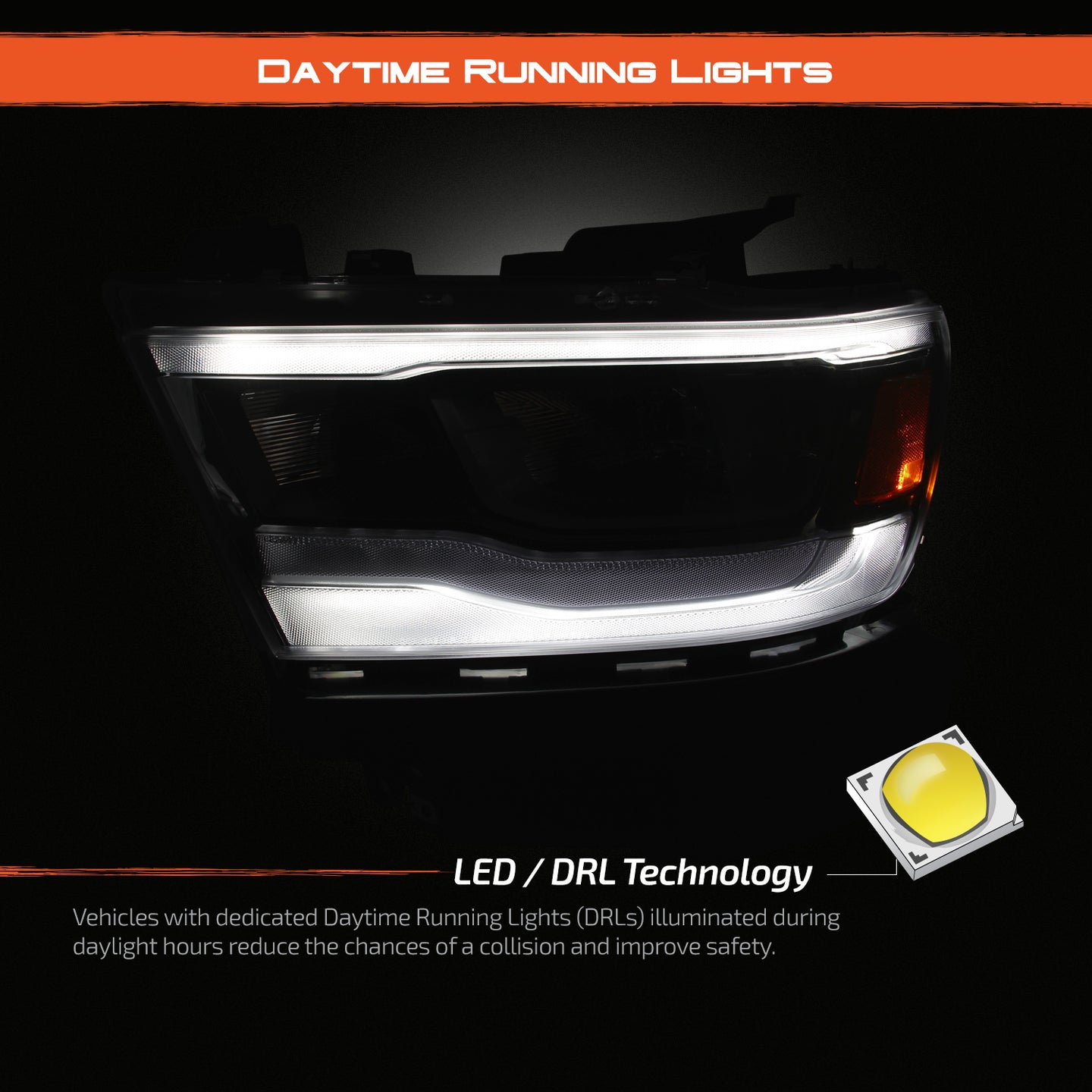AKKON - Fits 2019-2023 Ram 1500 [Full LED] Tube DRL Running Signal Headlights w/ Black Bezel Reflector Driver+Passenger