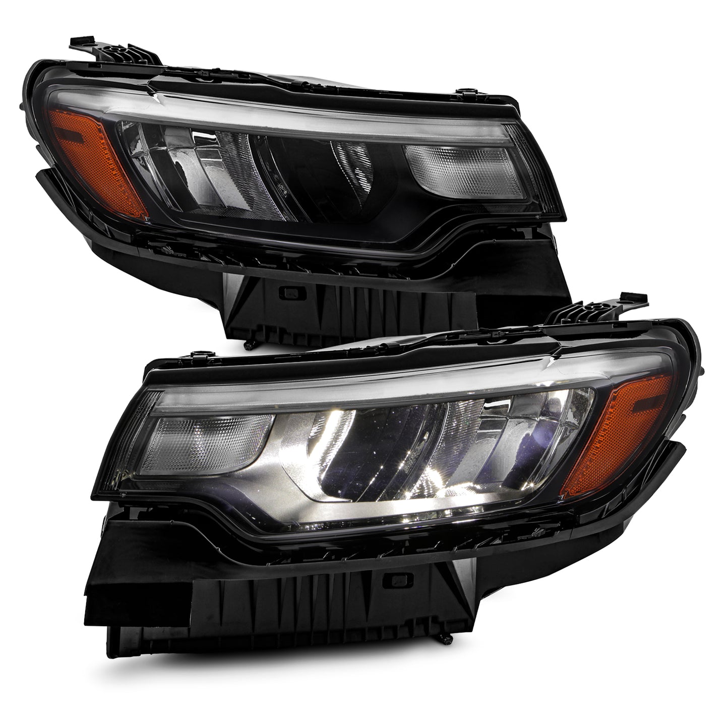 AKKON - Fits 2022-2024 Jeep Compass [LED High-Low Beam] Black Headlights Headlamp Pair Driver+Passenger w/ Non-DRL