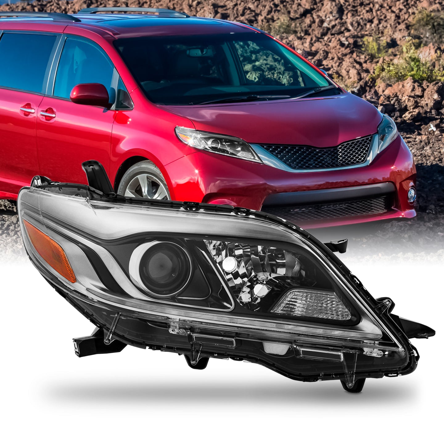 AKKON - Fits 2015-2019 Toyota Sienna SE [Halogen Type] Projector Chrome Headlight Passenger w/LED DRL Tube