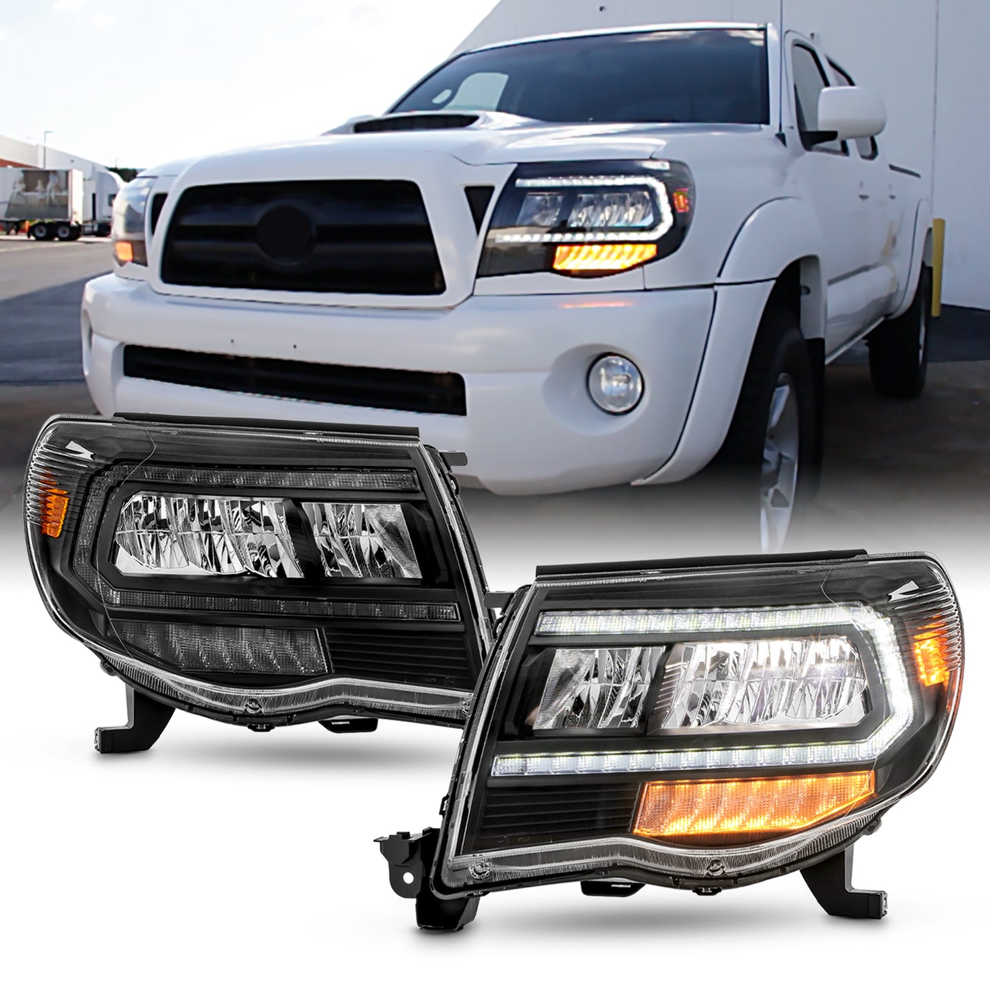 AKKON - Fit 2005-2011 Toyota Tacoma Pickup Truck 05-11 Full LED U-Type DRL Sequential Signal Headlights Welcome Animation Lamp Driver Passenger Side Black Housing Replacement