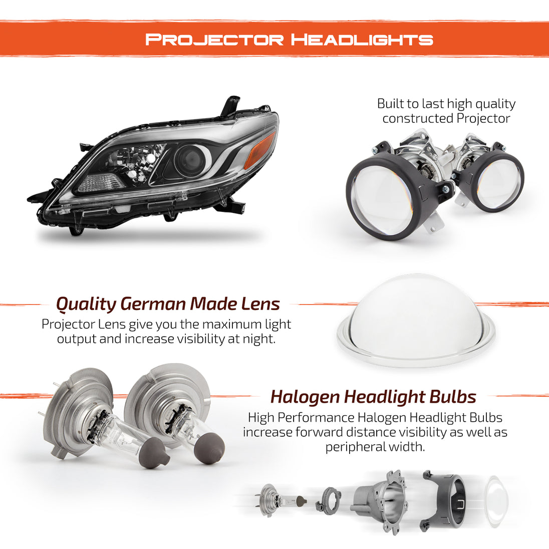 AKKON - Fits 2015-2019 Toyota Sienna SE [Halogen Type] Projector Chrome Headlight Driver w/ LED DRL Tube