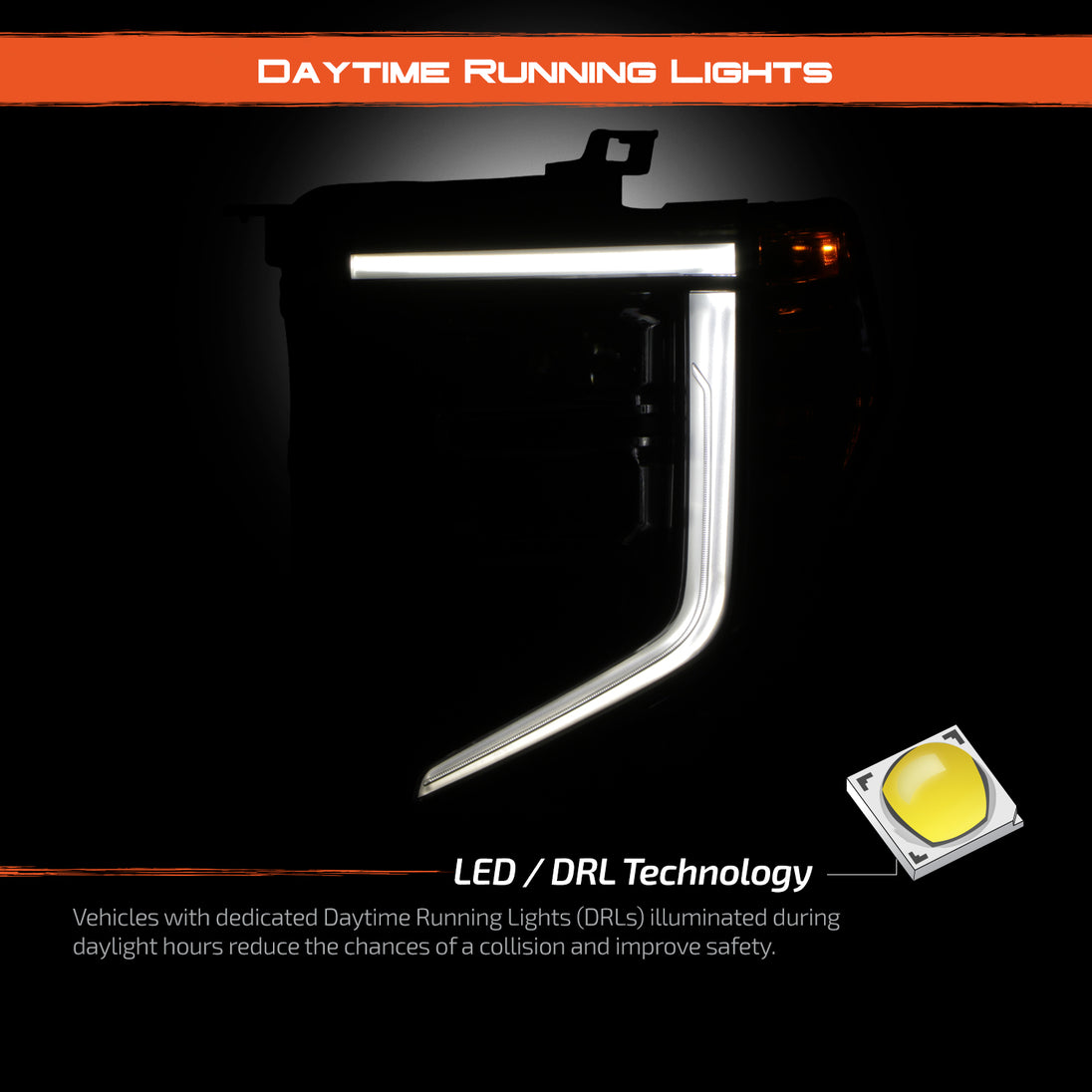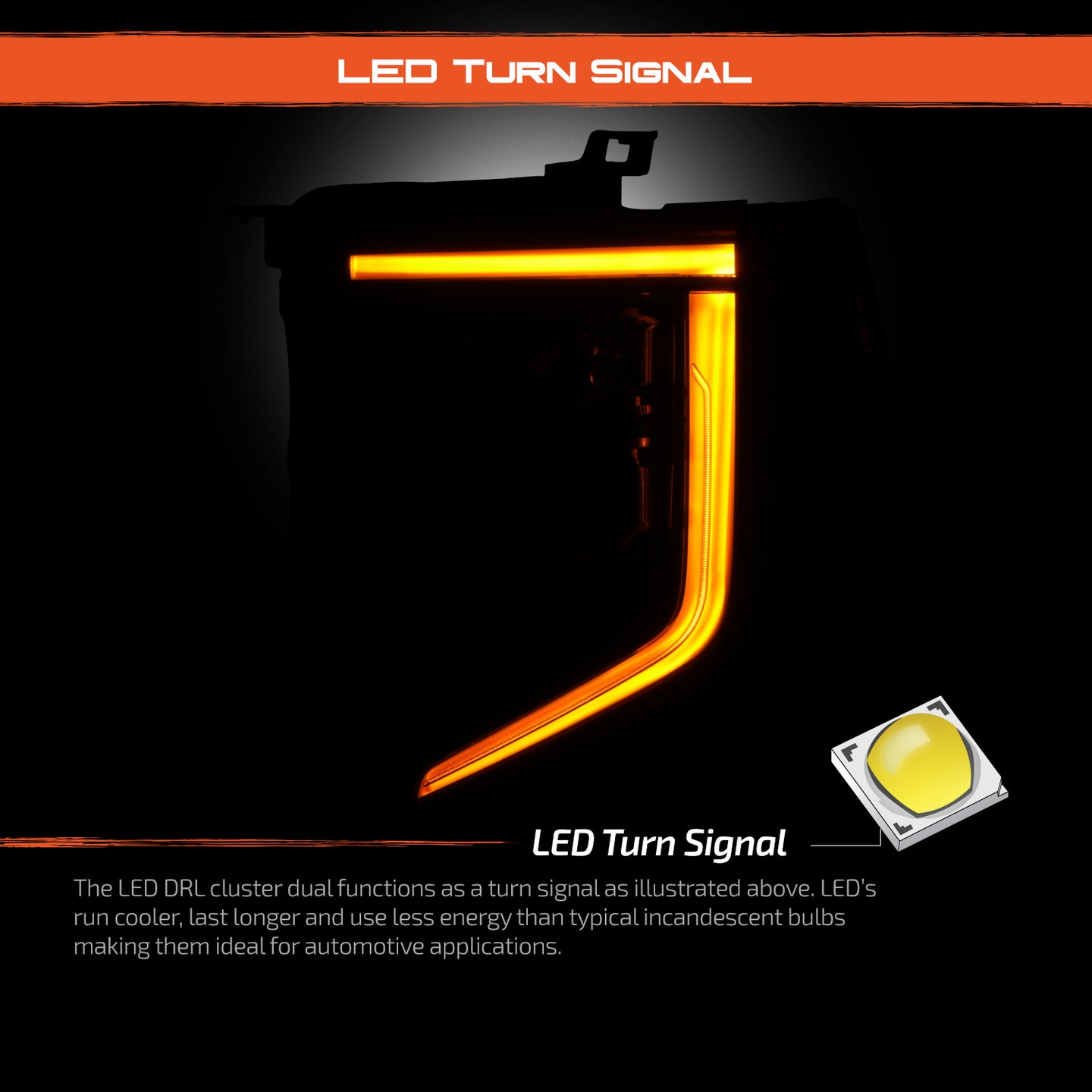 AKKON - Fit 2022 2023 2024 GMC Sierra 1500 SLT | Denali Full LED DRL Turning Signal (Black & Chrome Bezel) Projector Headlight OE Style Assembly
