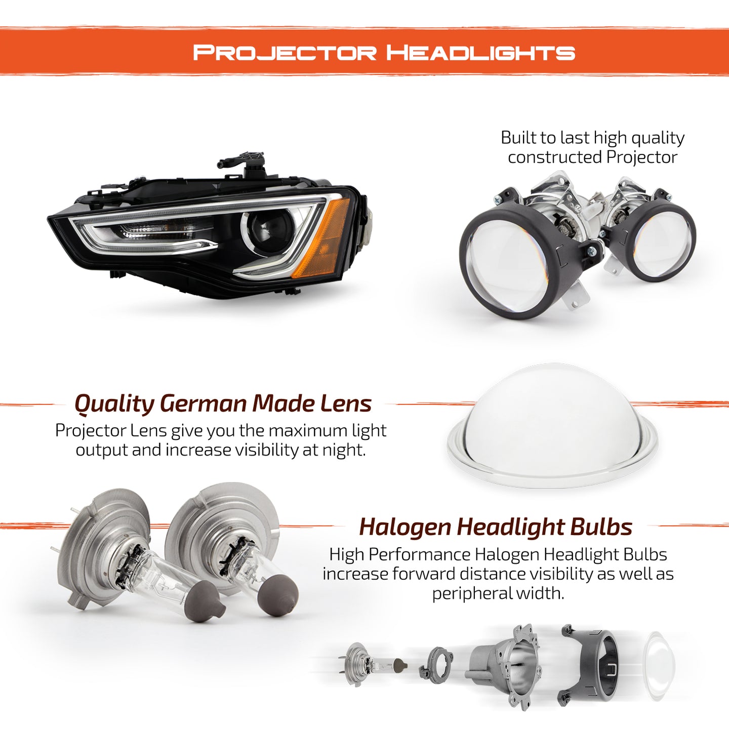 AKKON - Fits 2013-2017 Audi A5/A5 Quattro/S5 2-Door [HID/Xenon Non-AFS] DRL Tube Projector Headlight Driver Left Replacement