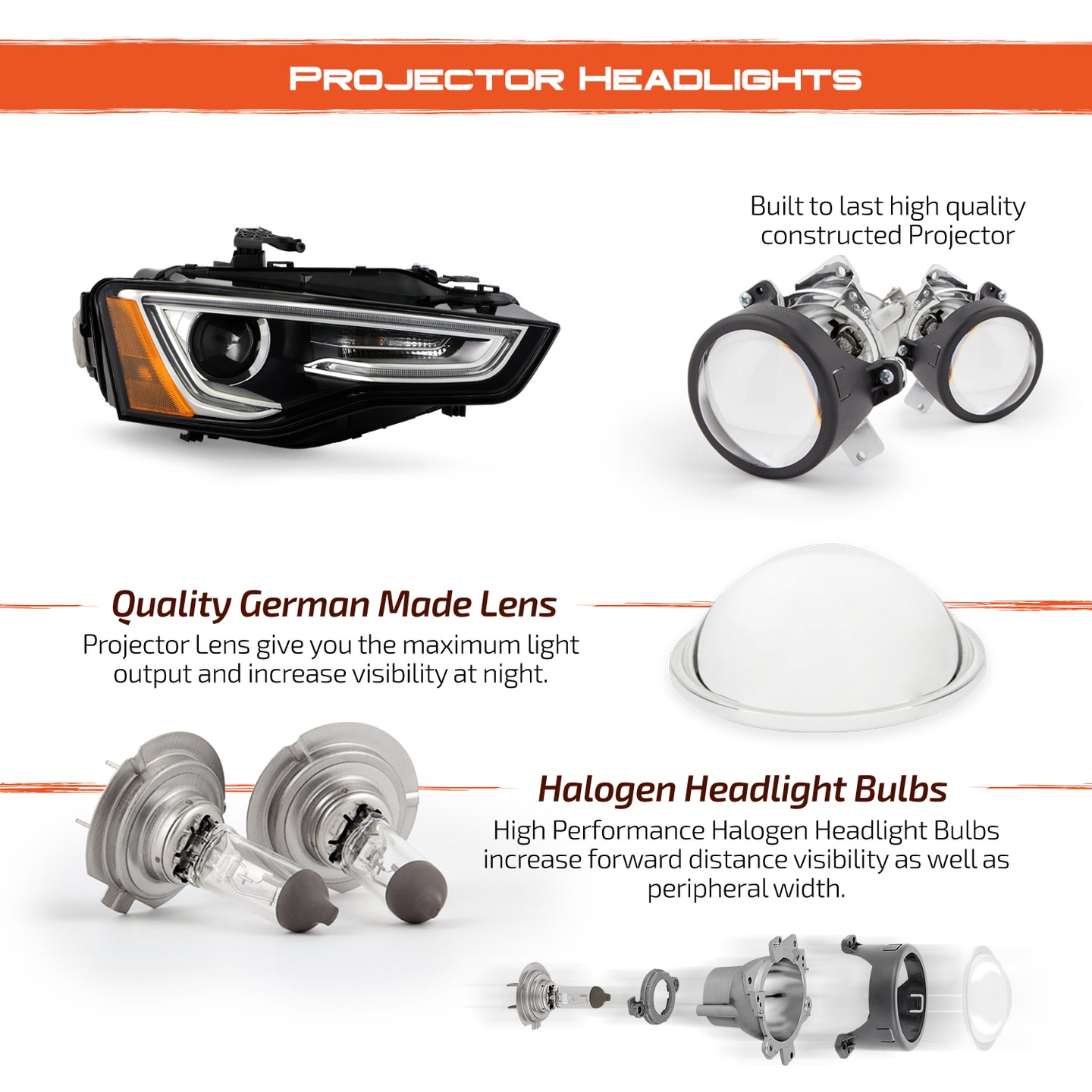 AKKON - Fits 2013-2017 Audi A5/A5 Quattro/S5 2-Door [HID/Xenon Non-AFS] DRL Tube Projector Headlight Passenger Right Replacement