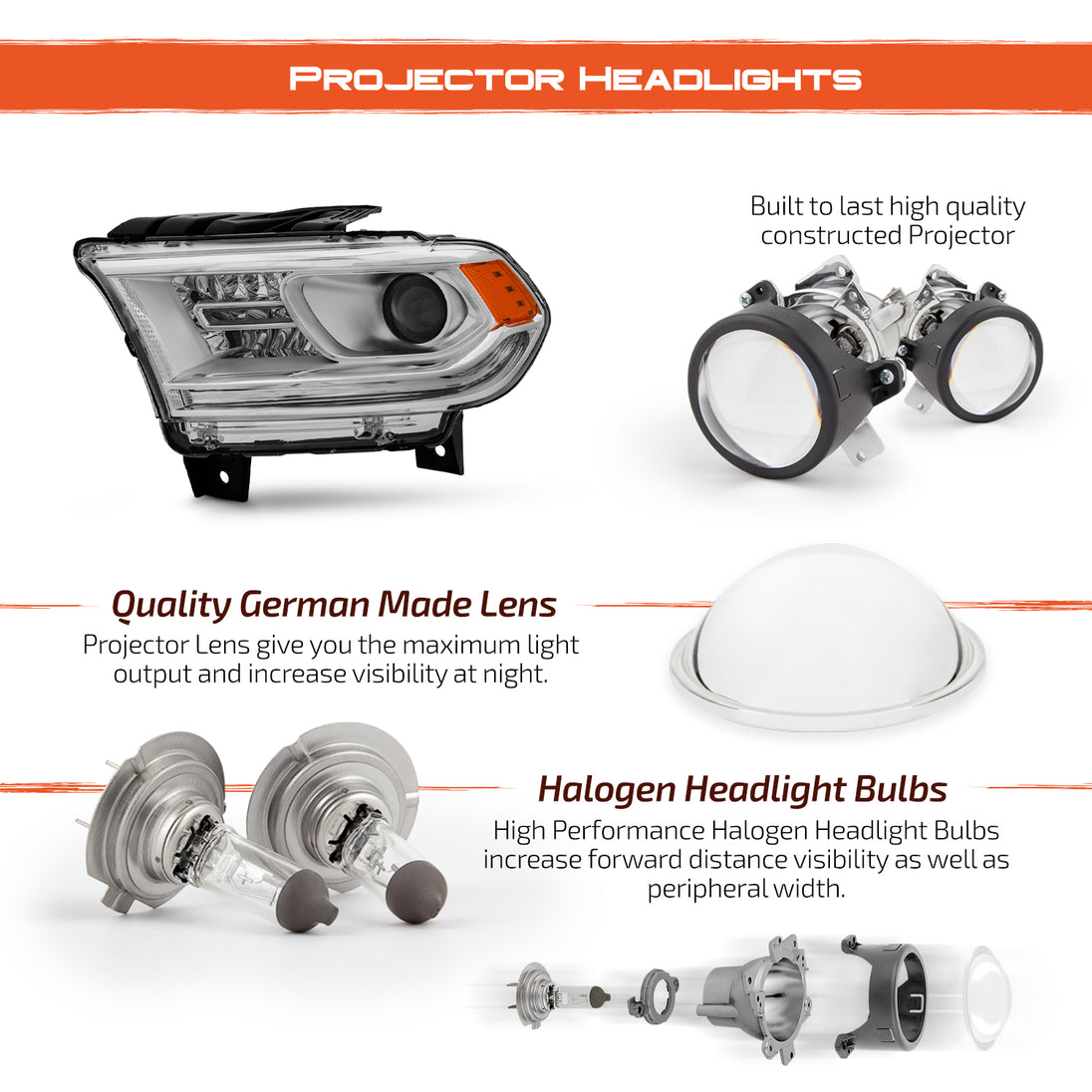 AKKON - Fit 2014 2015 2016 2017 Dodge Durango [Halogen Type] Non-DRL Models OE Style Projector Headlight Driver Left Side Chrome