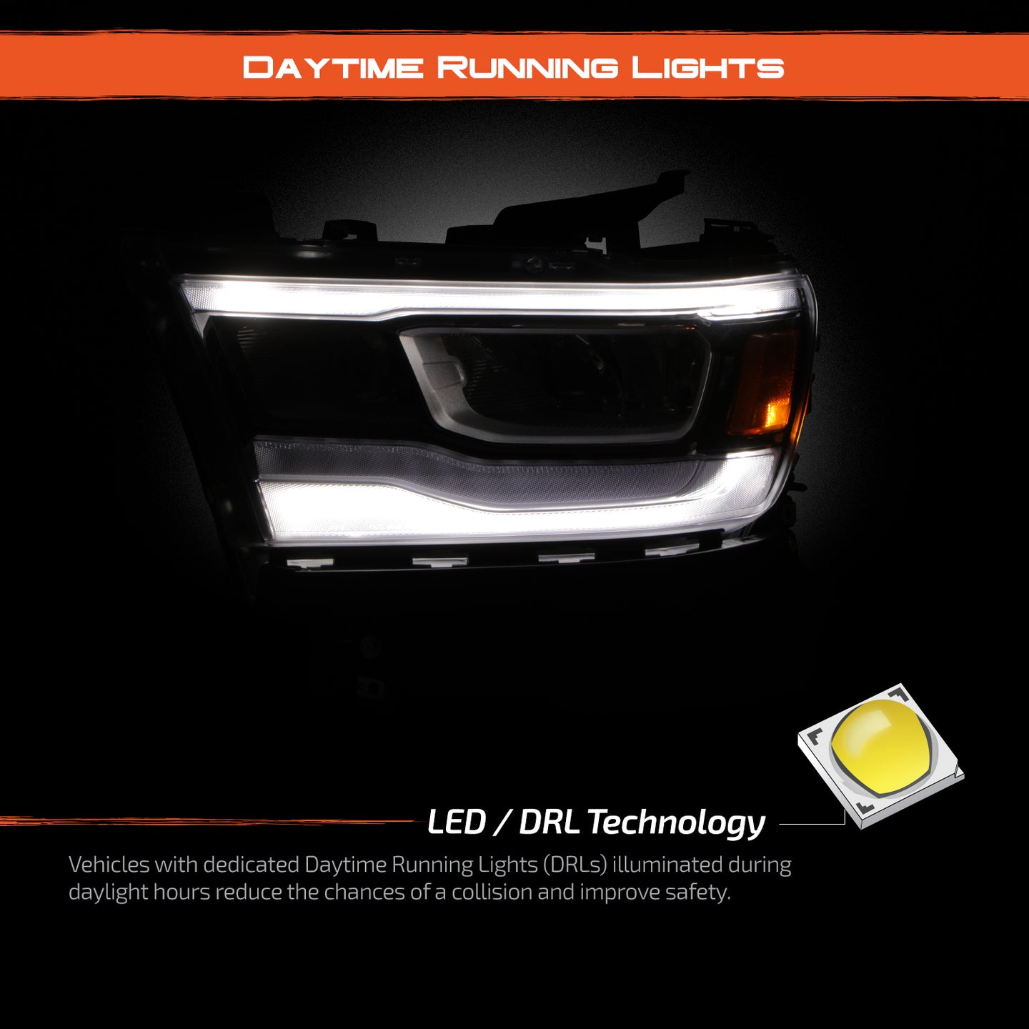 AKKON - Fits 2019-2023 Dodge Ram 1500 Chrome Bezel Style [FULL LED] Headlight Driver Left Side w/ Tube DRL Turn Signal