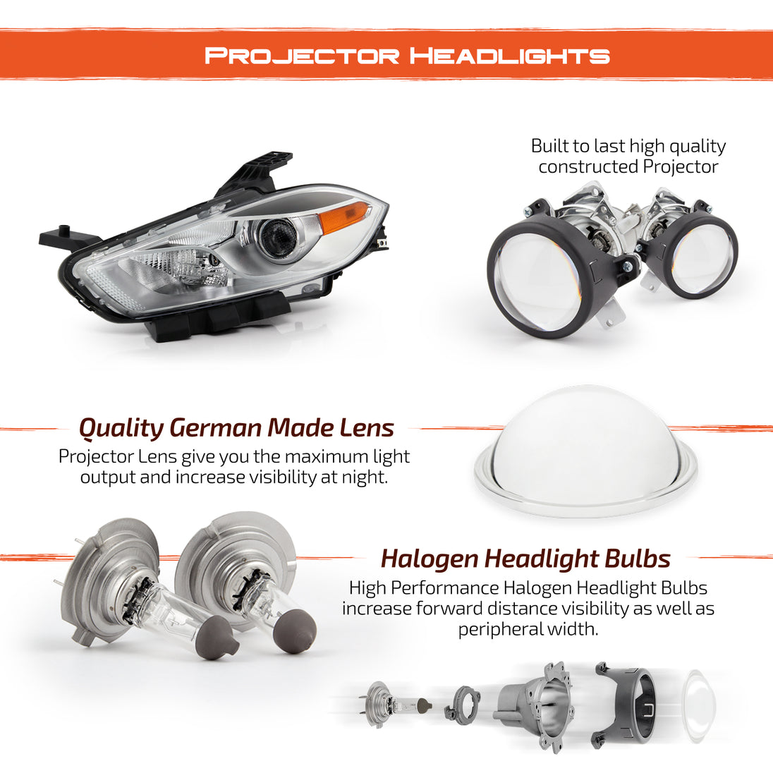 AKKON - Fits 2013-2016 Dodge Dart [Halogen Type] Projector Chrome Headlight Headlamp Driver Left Side w/ Chrome Bezel Model