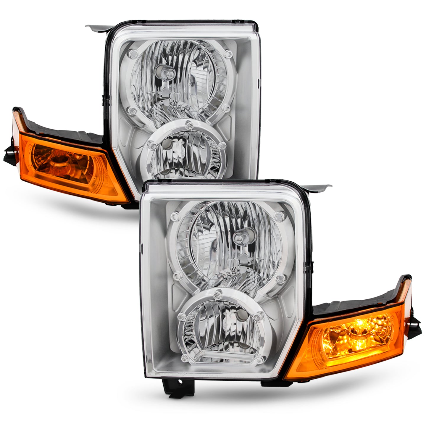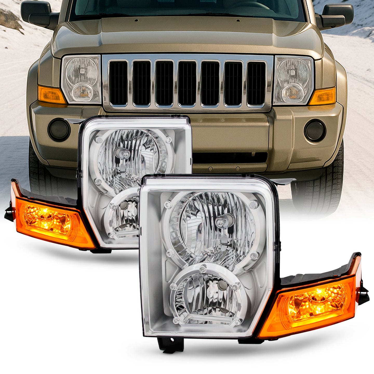AKKON - Fits 2006-2010 Jeep Commander SUV Chrome Headlights w/ Amber Signal Pair Driver+Passenger Replacement