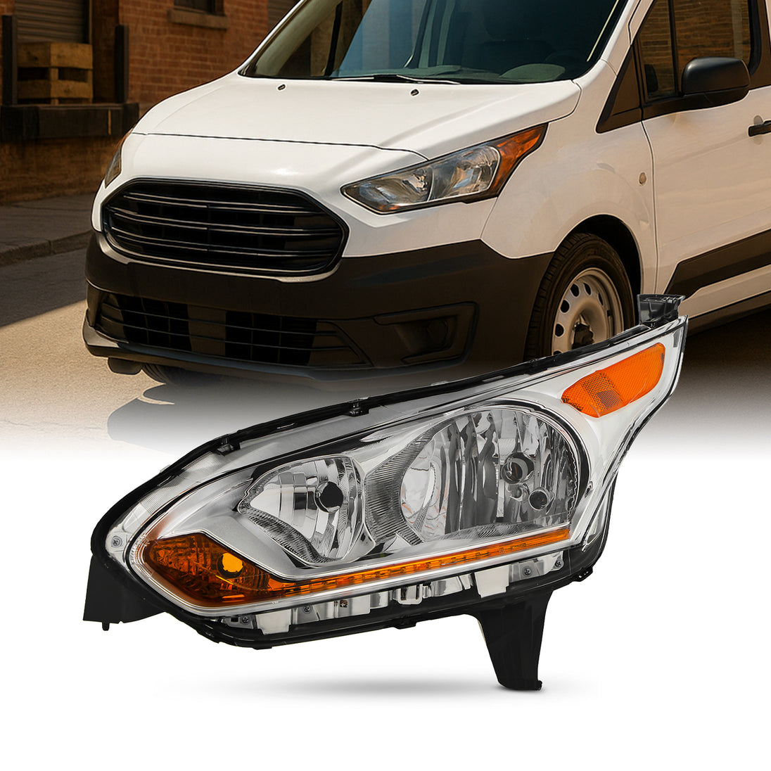 AKKON - Fit 2014 2015 2016 2017 2018 Ford Transit Connect 14-18 Halogen Type Headlight Headlamp Driver Left Side OE Style Chrome Housing Direct Replacement