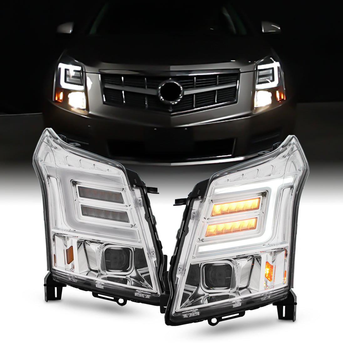 AKKON - Fit 2010 2011 2012 2013 2014 Cadillac SRX Full LED Projector Headlights w/DRL Sequential Signal Headlamp Driver Passenger Chrome