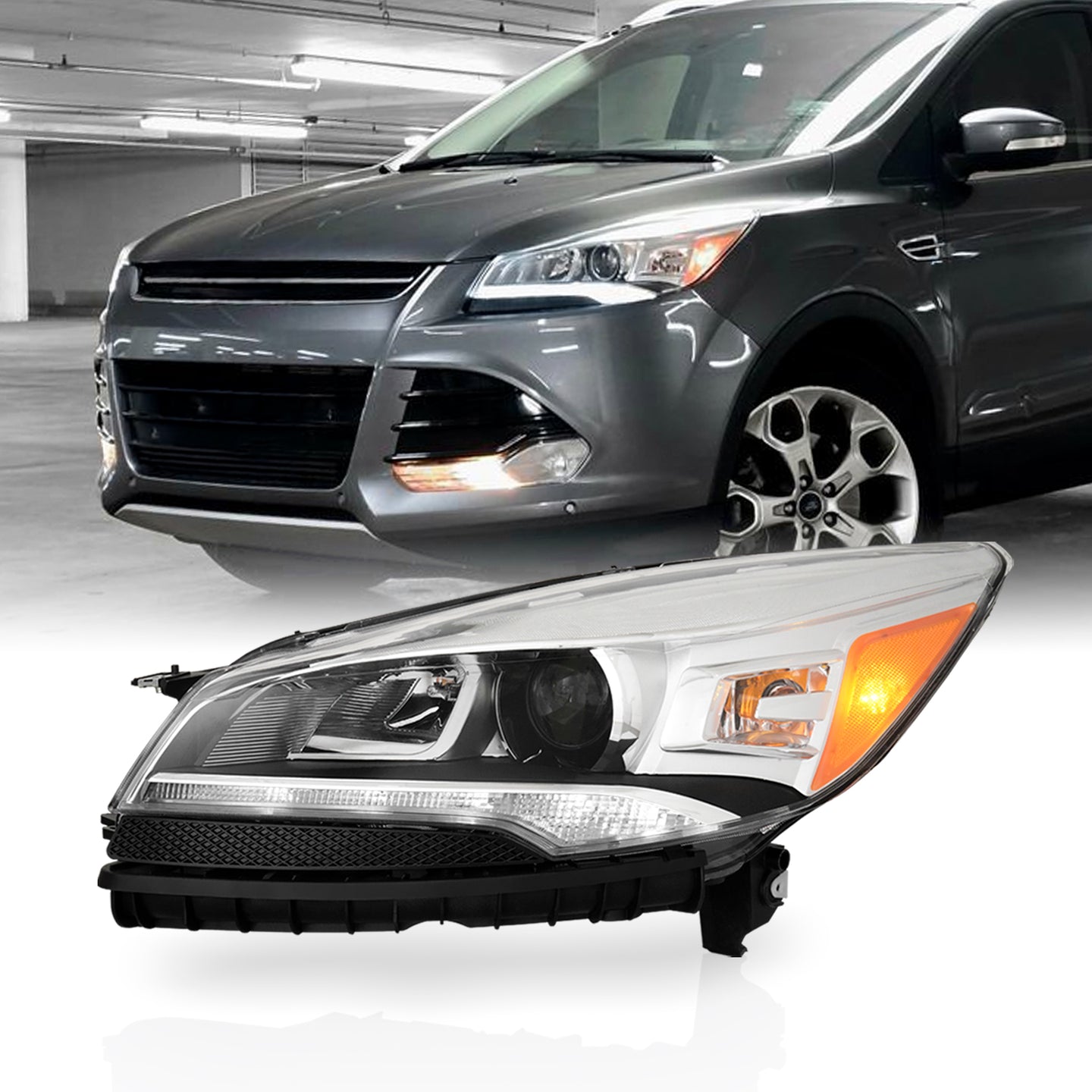 AKKON - Fits 2013-2016 Ford Escape [HID/Xenon Type] Chrome Headlight Driver Left Side w/ LED DRL Running Replacement