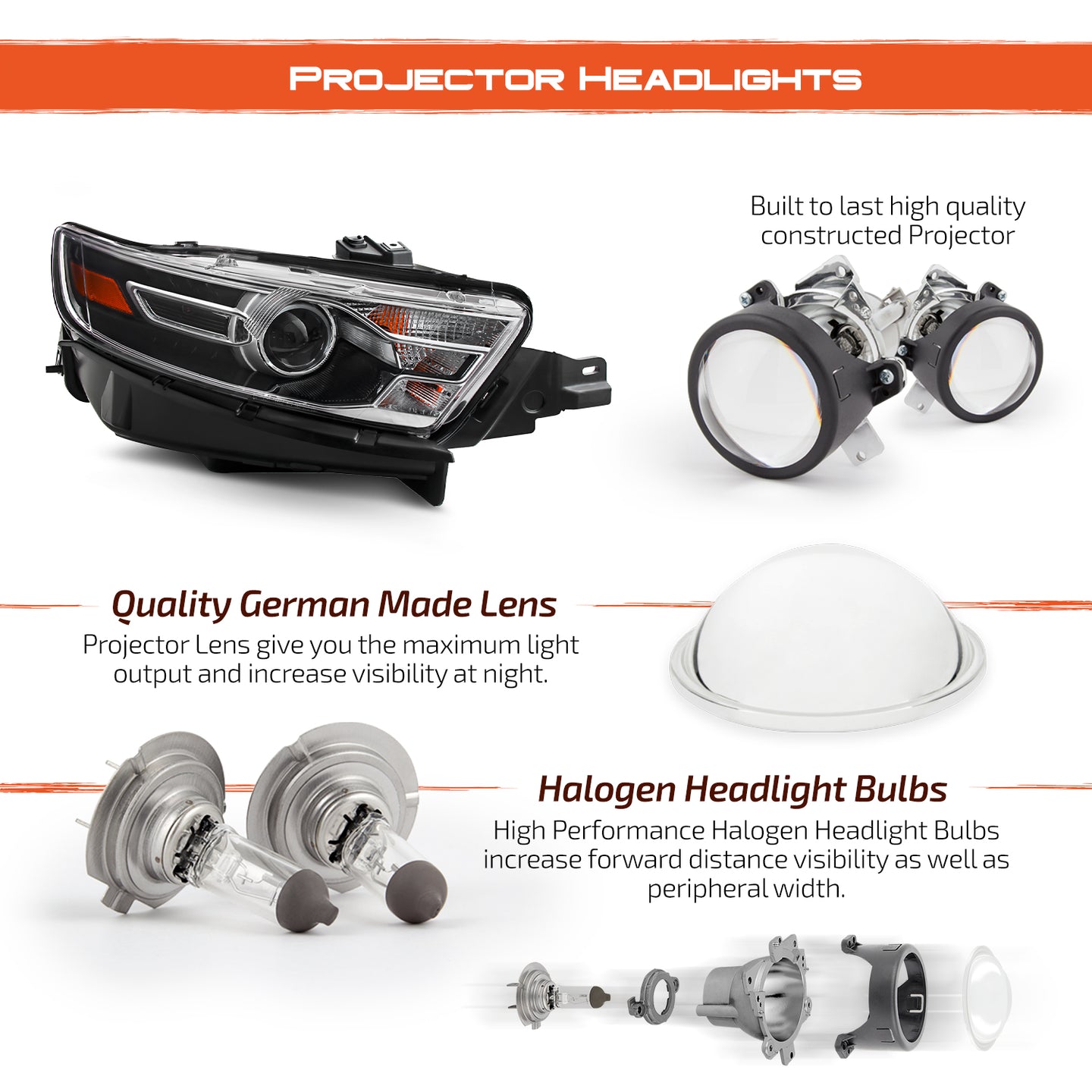 AKKON - Fits 2016-2019 Ford Taurus [Halogen Type] Projector Black Headlight Headlamp Passenger Right Side Replacement