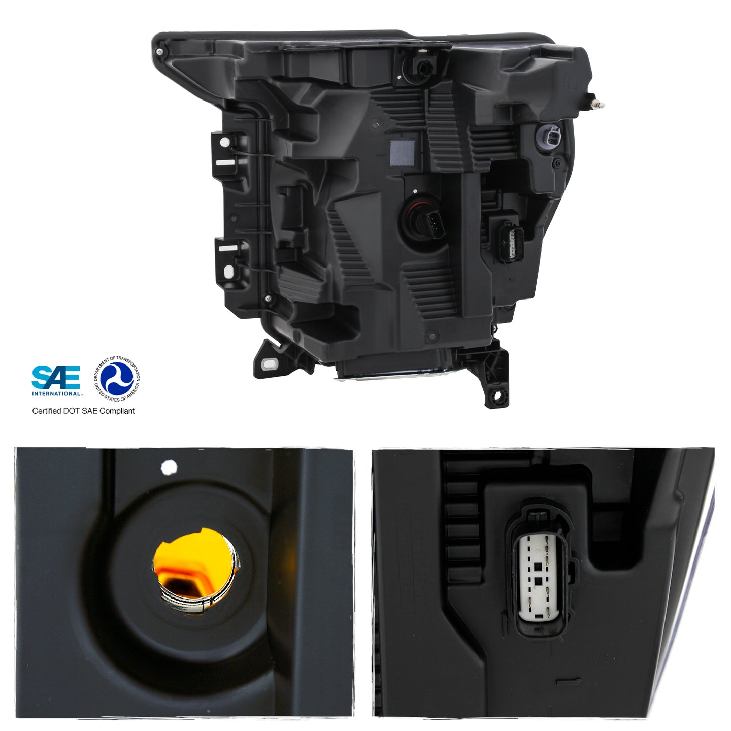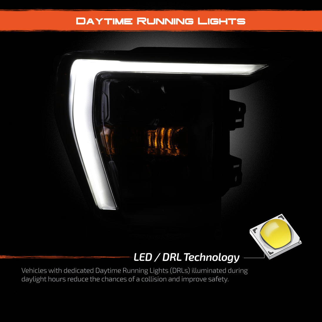 AKKON - Fit 2021 2022 2023 Ford F150 Pickup Truck Quad Beam LED w/ DRL Headlight w/o Reflector Headlamp OE Style Black Passenger Right Side