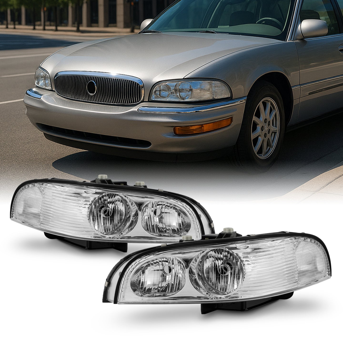 AKKON - Fits 1997-2005 Buick Park Avenue Chrome Headlights Headlamps Pair Driver Left+Passenger Right Replacement