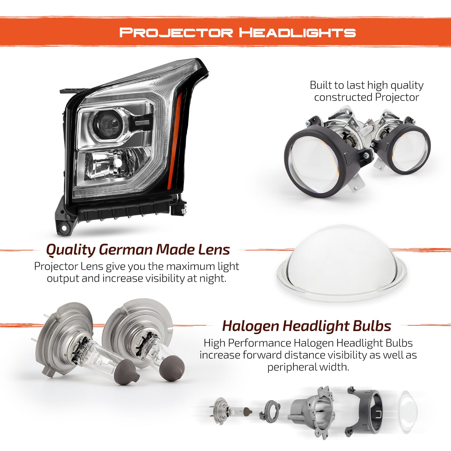 AKKON - Fits 2015-2020 GMC Yukon XL [HID/Xenon Type] Projector Black Headlight Driver Left Side w/LED DRL Running Signal