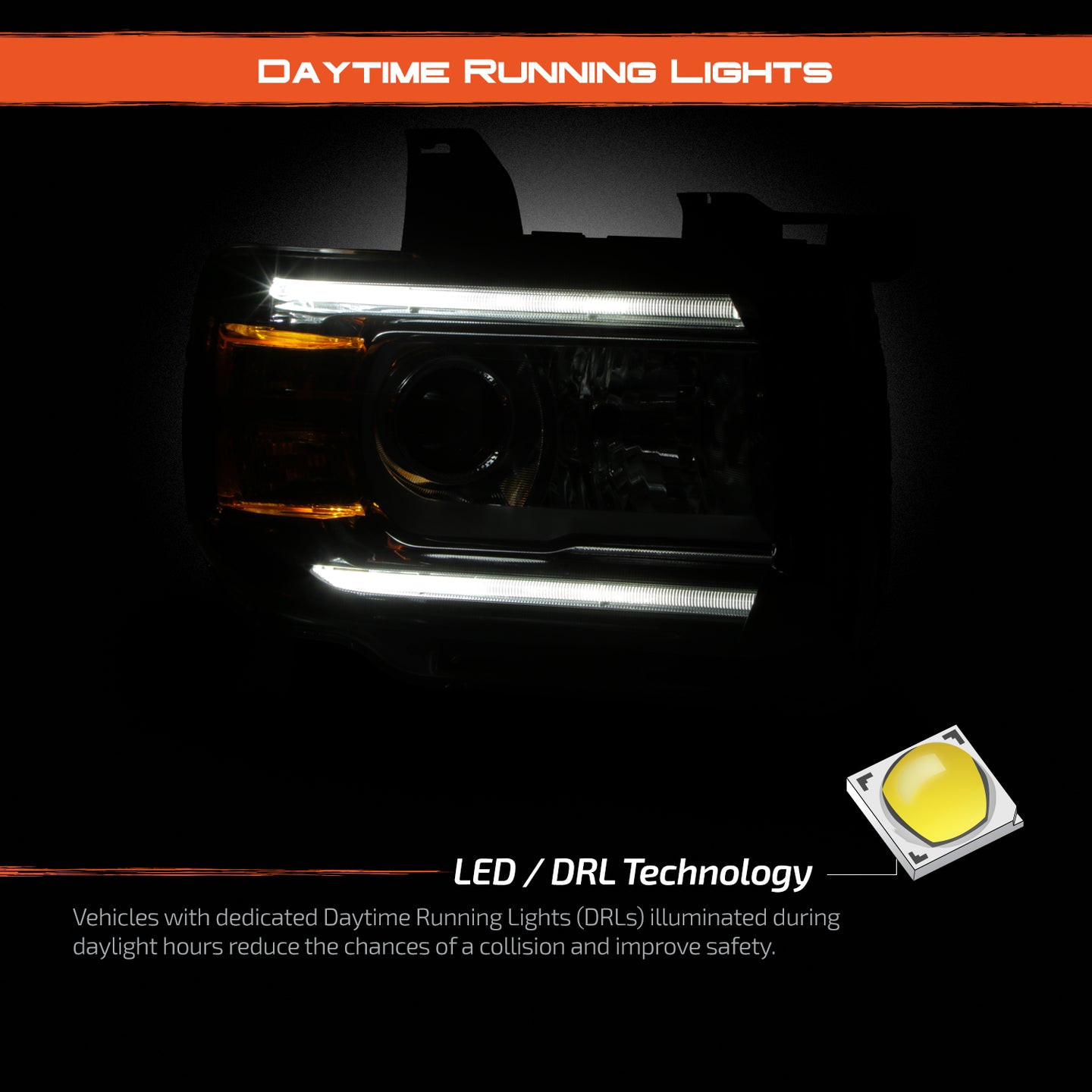 AKKON - Fits 2015-2022 GMC Canyon Projector Chrome Headlight Headlamp Passenger Right Side w/ LED DRL Tube Running Light