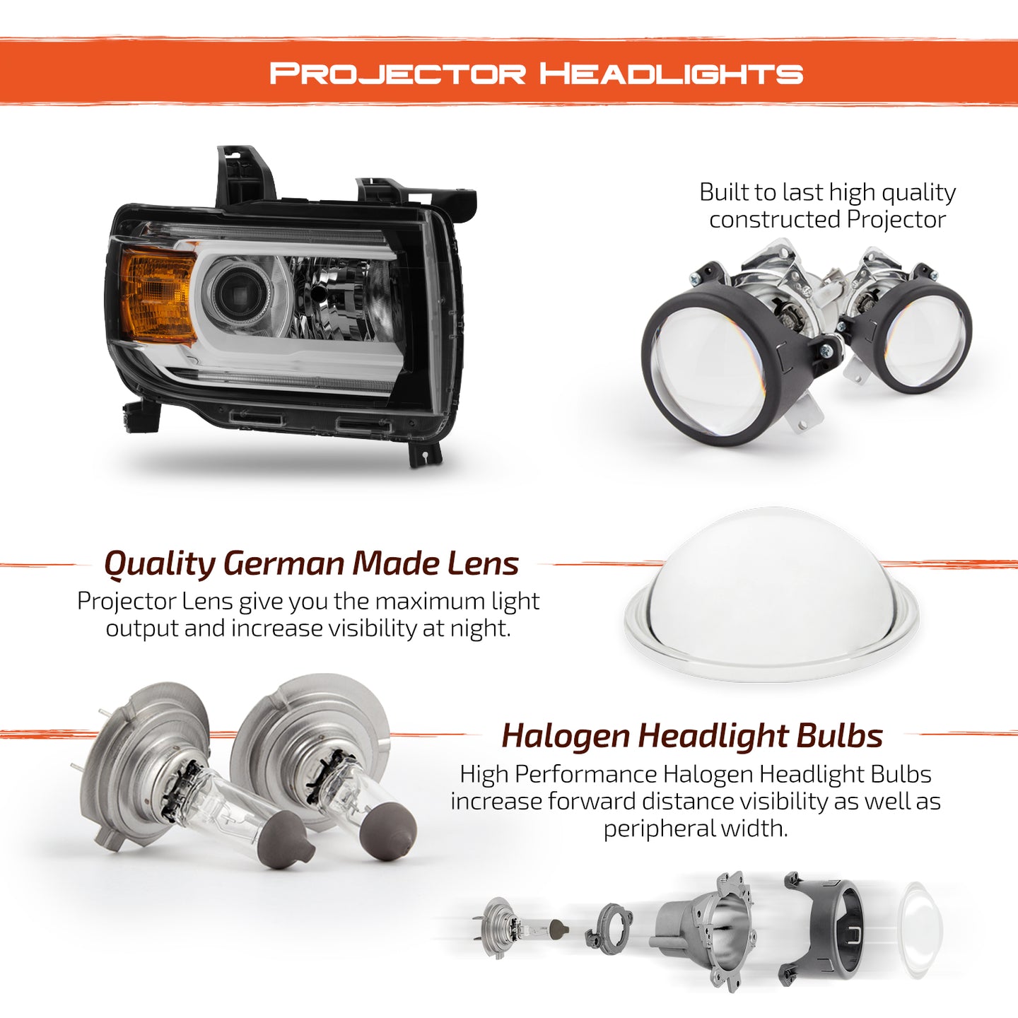 AKKON - Fit 2015-2021 Subaru WRX / STI OE Factory Style Projector Headlights Black Housing Assemblies with Amber Reflector