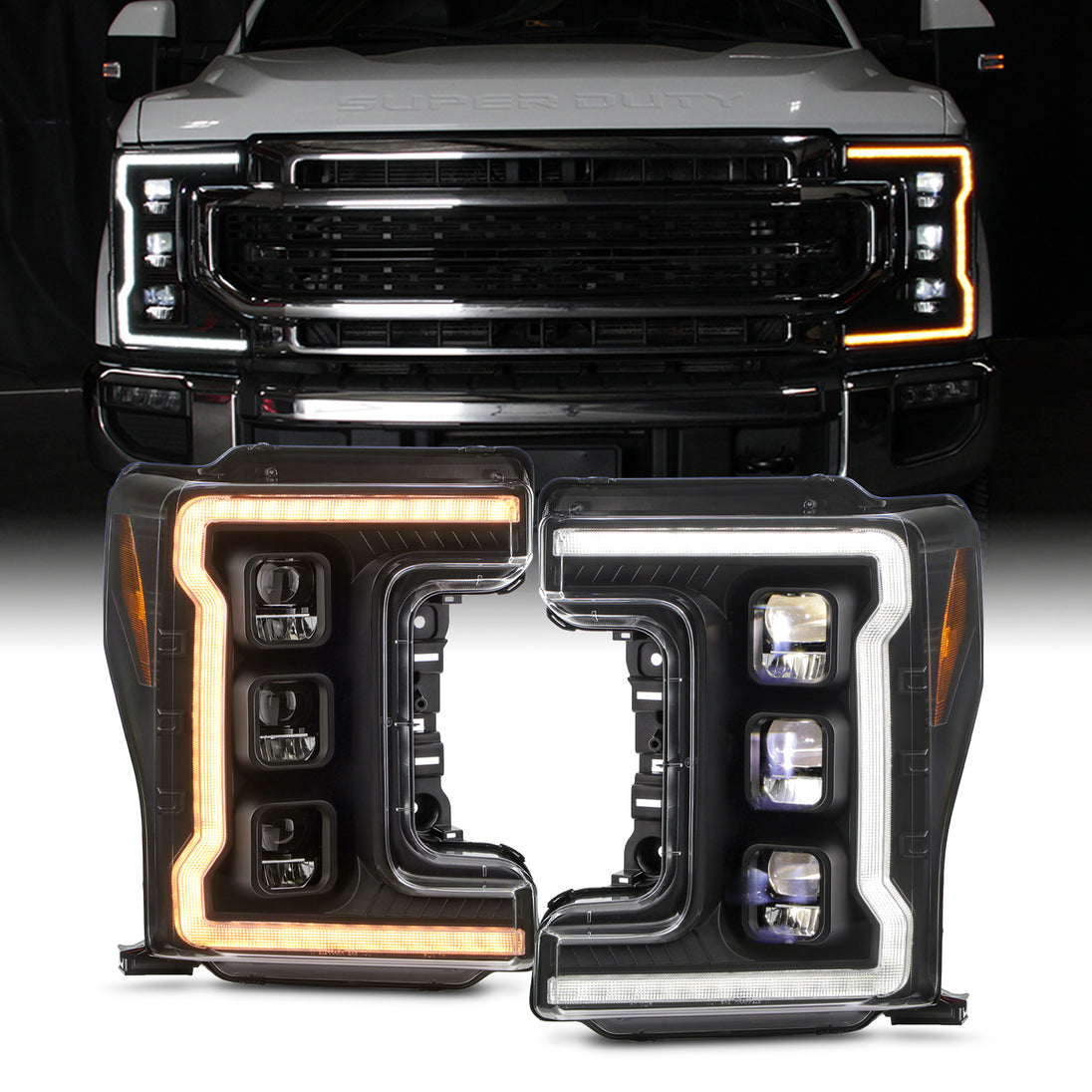 AKKON - Fit 2017 2018 2019 Ford F-250|F-350|F450 Super Duty Full LED Headlights Greeting Light Animation Switchback Sequential Turn Signal Lamp Black