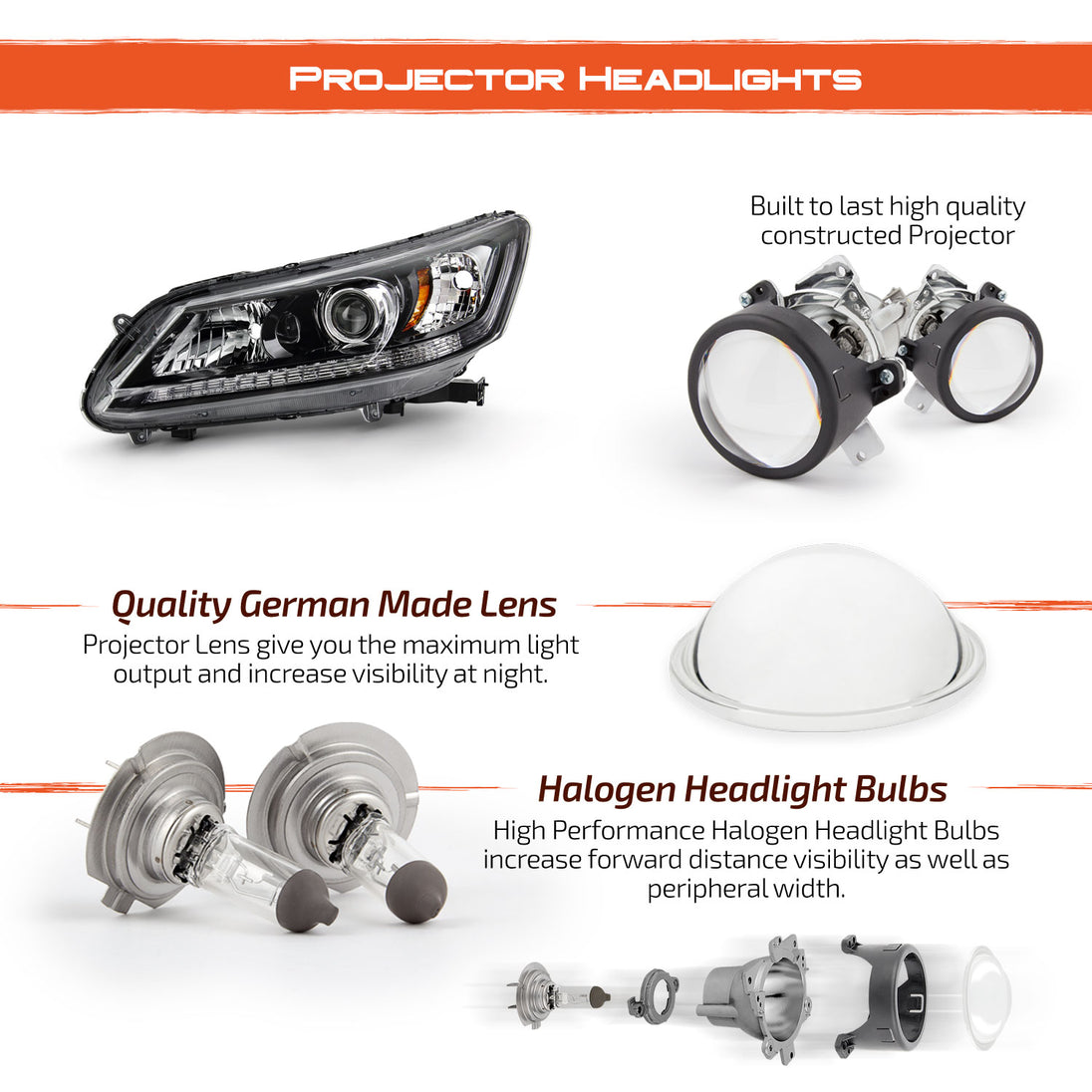 AKKON - Fits 2013 2014 2015 Honda Accord 4Door Sedan without LED DRL Model [Halogen Type] Black Clear Headlight Left Driver Side