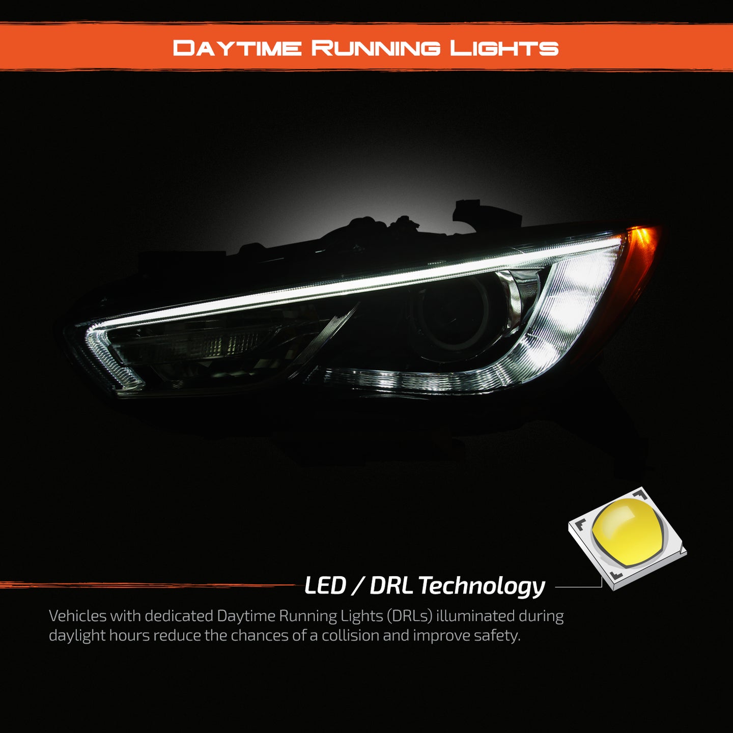 AKKON - Fits 2016 2017 2018 QX60 LED DRL Running [HID/Xenon Type] Projector Chrome Headlight Driver Left Side Non-AFS