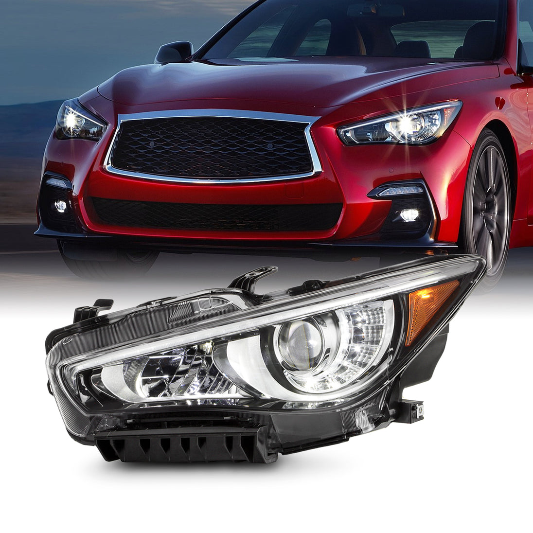 AKKON - Fits 2014-2022 Infiniti Q50 [LED Hi-Lo Beam] Projector Black Headlight Driver Left Side w/ AFS Model Replacement