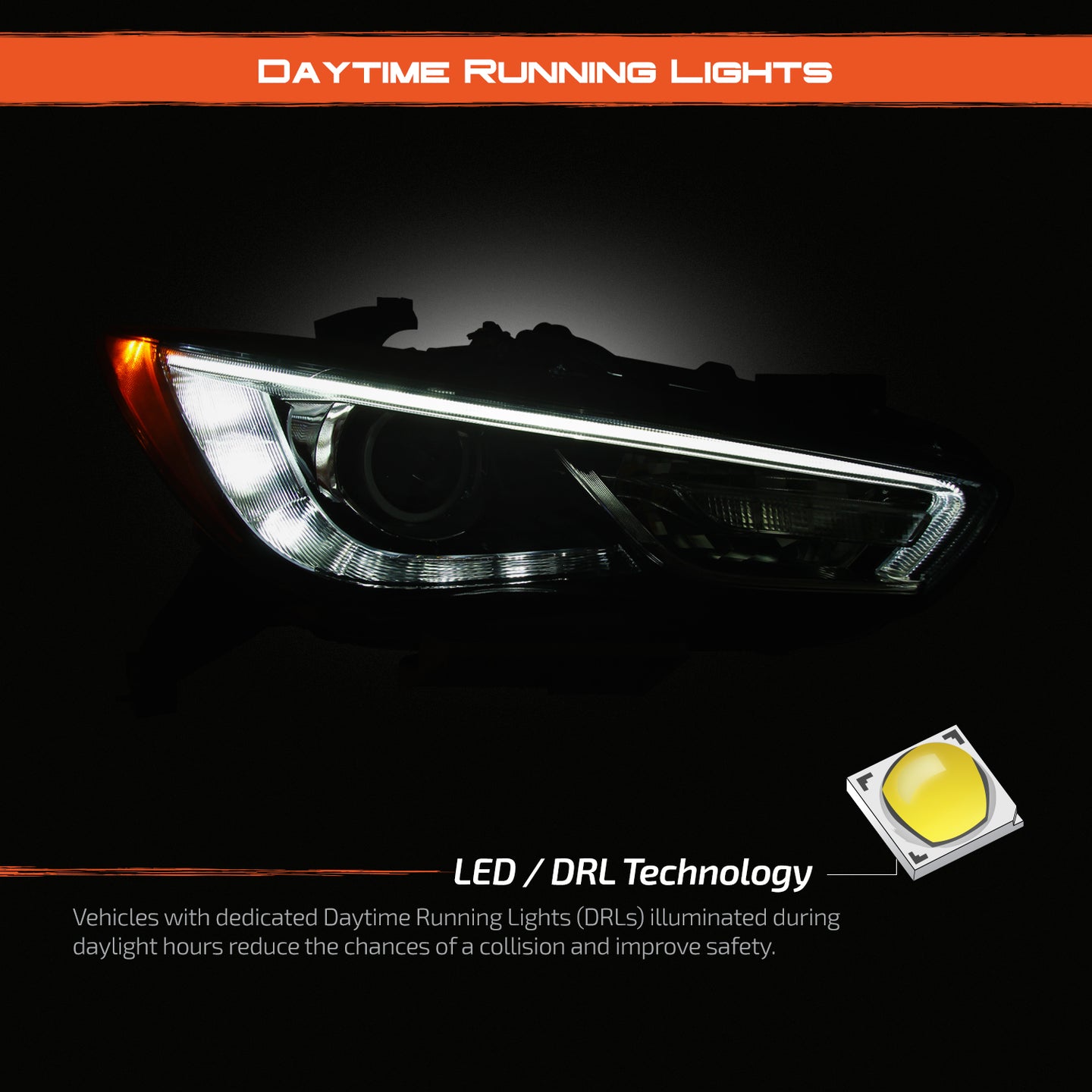 AKKON - Fits 2016-2018 QX60 LED DRL Running [HID/Xenon Type] Projector Chrome Headlight Passenger Right Side Non-AFS