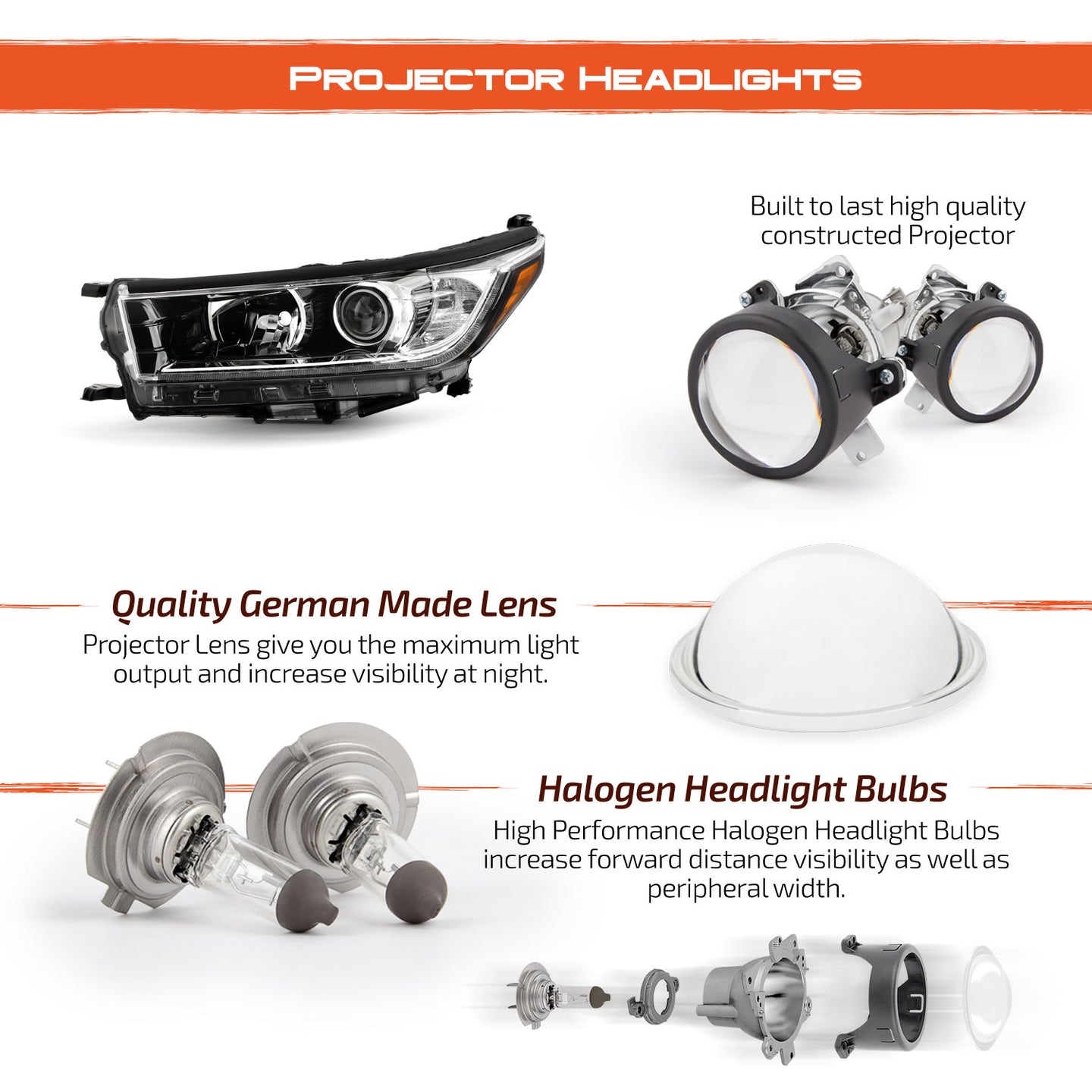 AKKON - Fits 2017 2018 2019 Toyota Highlander SE Limited [Halogen Type] Projector Black Headlights Pair Left+Right w/ LED DRL