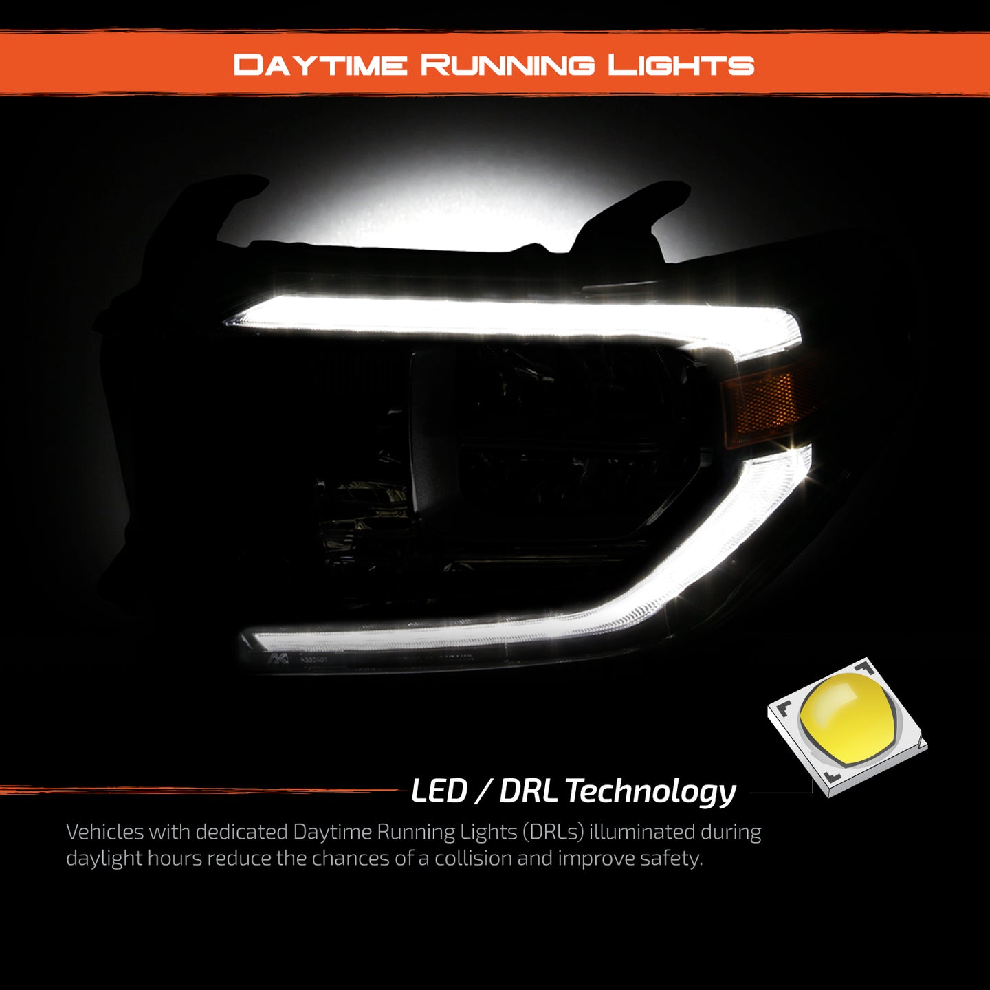AKKON - Fits 2018 2019 2020 Toyota Tundra Pickup w/ DRL LED [Tube Bar] Black Headlight Headlamp Driver Left Side Replacement