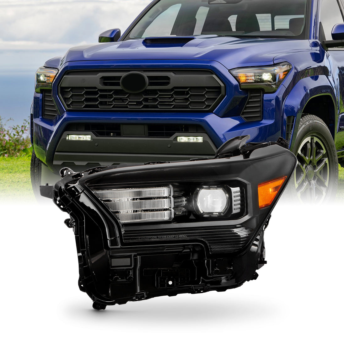AKKON - Fits 2024-2026 Toyota Tacoma [LED Lo-Hi Beam] Projector Black Headlight Driver Left Side w/ Halogen Turn Signal
