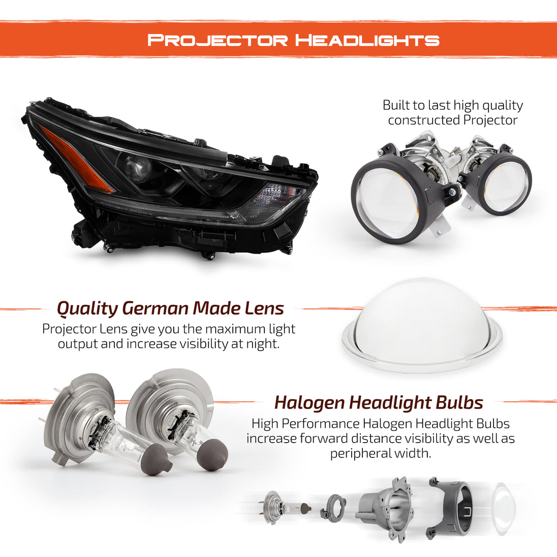 AKKON - Fit 2020 2021 2022 2023 Toyota Highlander [Dual Beam Projector] Chrome Headlight Passenger Right w/Non LED DRL