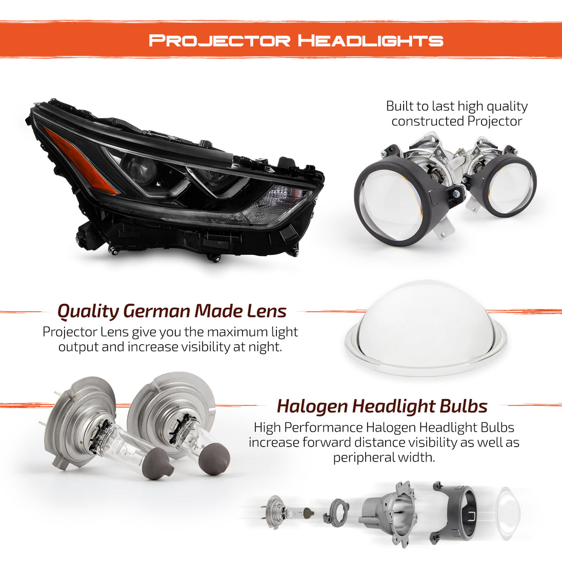 AKKON - Fits 2020 2021 2022 2023 Toyota Highlander Projector Black Headlight Headlamp Passenger Right Side w/ LED DRL