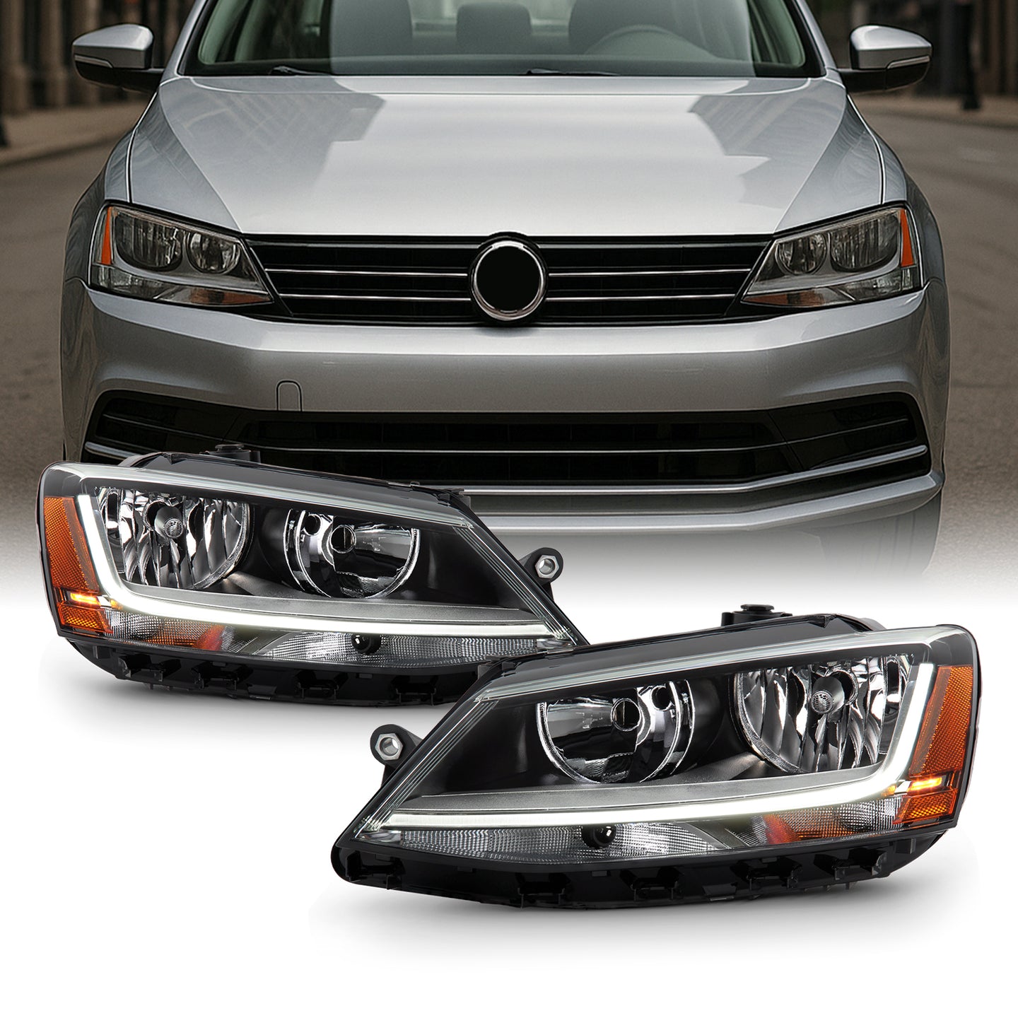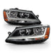 AKKON - Fits 2011-2016 Volkswagen Jetta Sedan Non-DRL 2017-2018 Jetta LED DRL Model [Halogen Type] Black Headlight Pair LH+RH