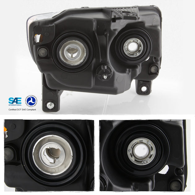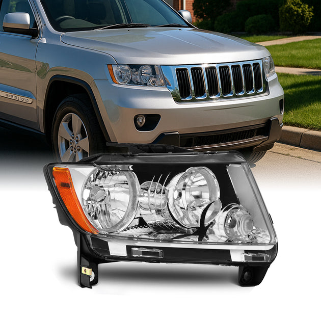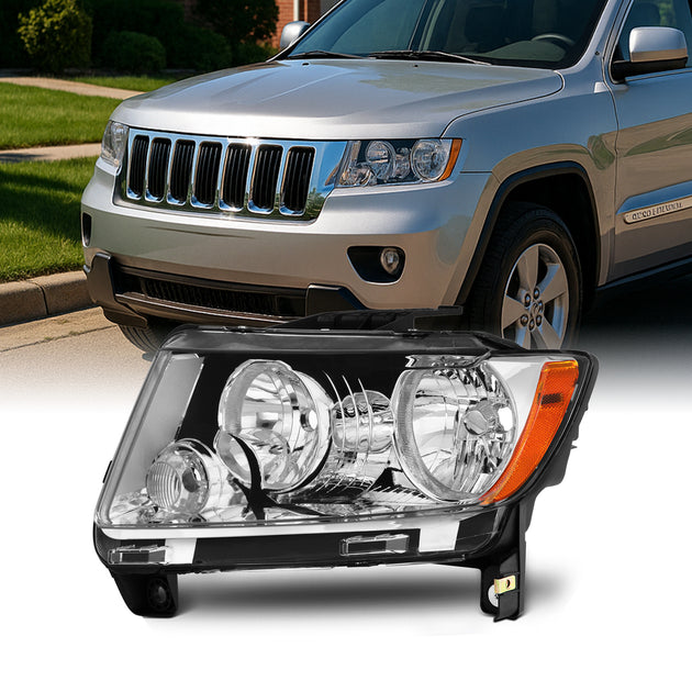 AKKON - Fit 2011 2012 2013 Jeep Grand Cherokee [Halogen Type] Headlight OE Style Chrome Housing Replacement Headlamp