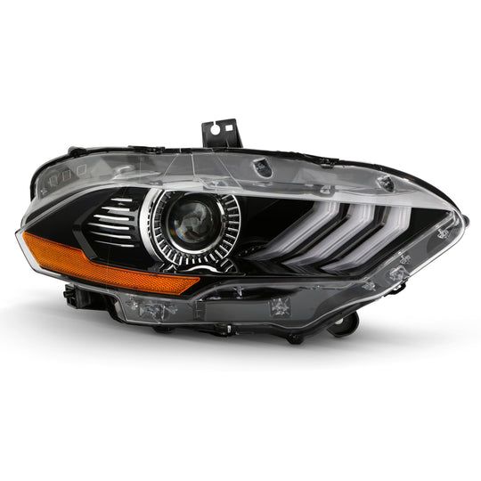 AKKON - Fits 2018-2023 Ford Mustang LED Tube [Factory Style] Projector Black Headlight Headlamp Replacement Passenger Right Side