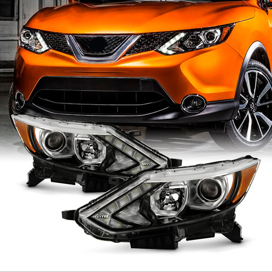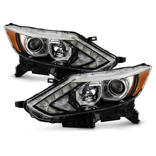 AKKON - Fits 2017 2018 2019 Rogue Sport [Halogen Type] LED DRL Running Projector Chrome Headlights Pair Replacement