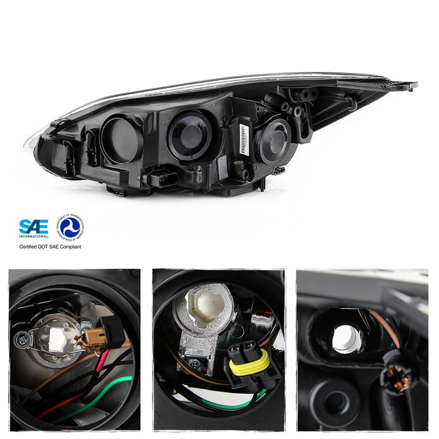 AKKON - Fits 2012 2013 2014 Ford Focus 4Door Sedan Hatchback [Halogen Type] Black Trim Headlight Passenger Right Replacement