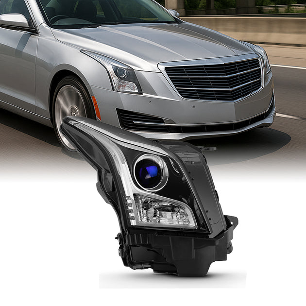 AKKON - Fits 2013 2014 2015 2016 2017 2018 Cadillac ATS Sedan [Halogen Type] Projector Chrome Headlight Passenger Right headlamp