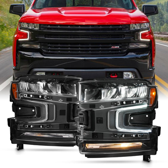 AKKON - Fits 2019 2020 2021 Chevy Silverado 1500 [LED High&Low Beam] DRL Black Headlights Pair w/ Halogen Turn Signal