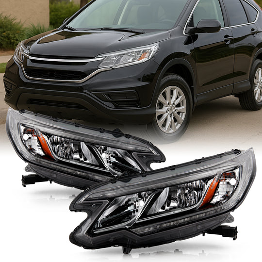 AKKON - Fit 2015-2016 Honda CRV Halogen Type w/LED DRL Models OE Style Headlight Headlamp Assembly Set