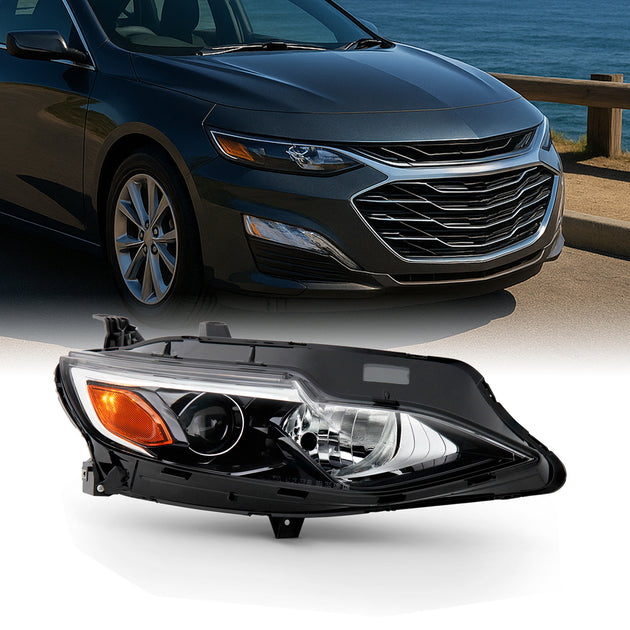 AKKON - Fits 2019-2021 Chevy Malibu [Halogen Type] Projector Chrome Headlights Passenger Right Side Replacement 19 20