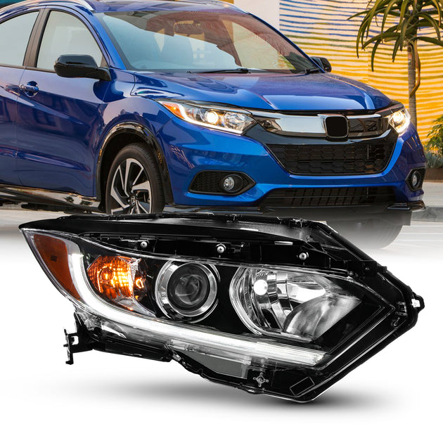 AKKON - Fit 2019 2020 2021 2022 Honda HR-V 19-22 Halogen w/ LED DRL Headlights OE Style Headlamp Black Passenger Right Side