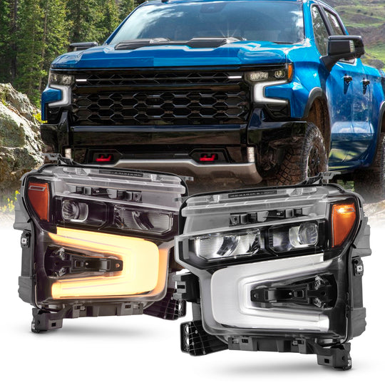 AKKON - Fits 2022-2024 Chevy Silverado 1500 ZR2 Full LED Projector Black Headlights Pair w/DRL Switchback Turn Signal