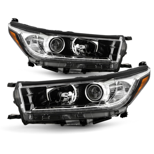 AKKON - Fits 2017 2018 2019 Toyota Highlander SE Limited [Halogen Type] Projector Black Headlights Pair Left+Right w/ LED DRL