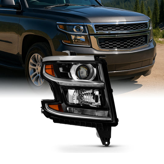 Regular price $122.99This is a 100% brand new Passenger (Right) Side Headlight Replacement Assembly in Black Housing With Crystal Clear Lens Compatible With: 2015-2020 Chevy Suburban 2015-2020 Chevy Tahoe ***Compatible on Passenger Right Side Only*** ***Compatible on Models... -